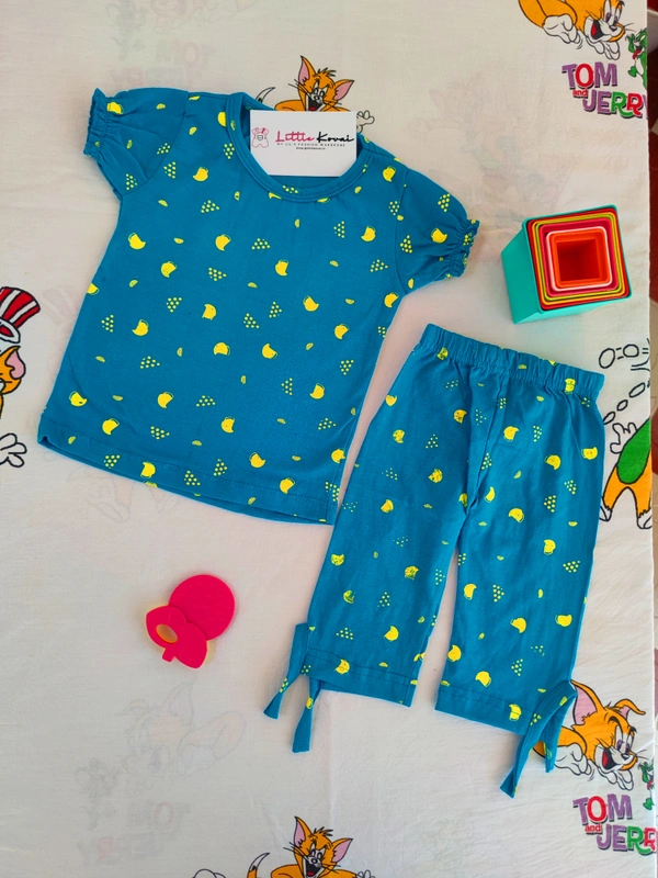 Baby Girl Cotton Tshirt Pant Combo Sets - Blue Green
