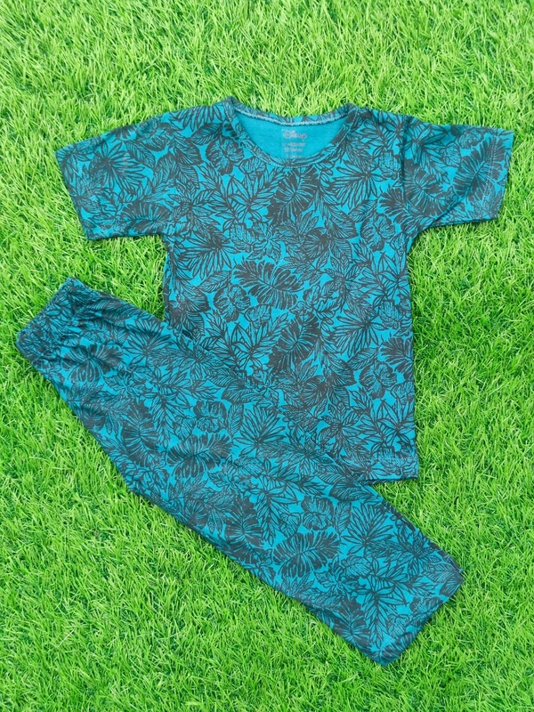 Half Sleeve Pyjama set (Co-ord set) for Boys & Girls - Floral Dark Green