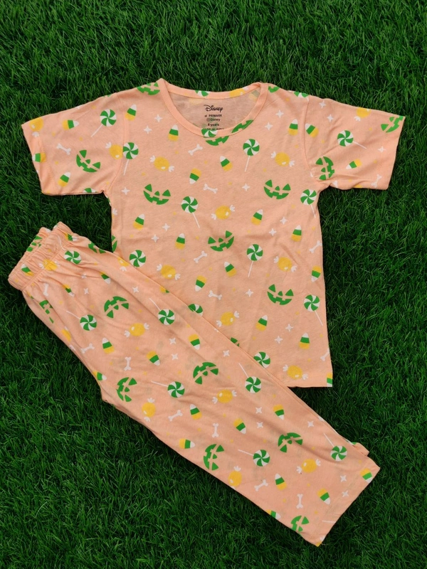 Half Sleeve Pyjama set (Co-ord set) for Boys & Girls - Light Orange Lollypop