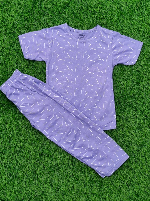 Half Sleeve Pyjama set (Co-ord set) for Boys & Girls - Lined Violet