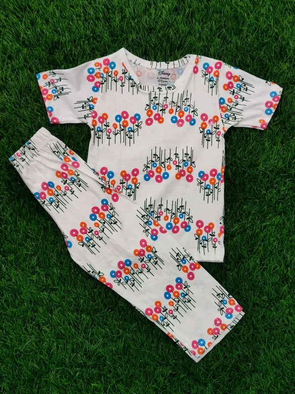 Half Sleeve Pyjama set (Co-ord set) for Boys & Girls - White Hanging Flowers