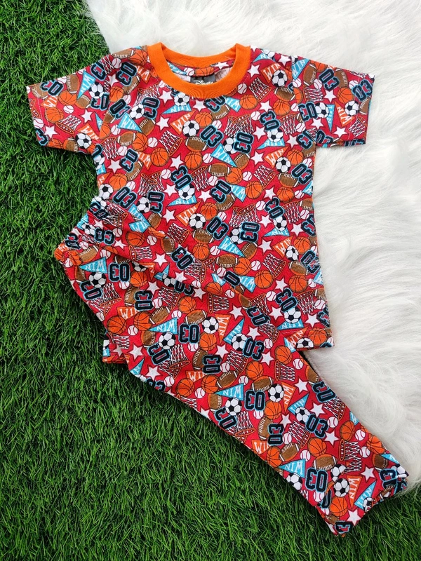 Half Sleeve Pyjama set (Night dress) for Boys & Girls - Rugby Player (Orange)