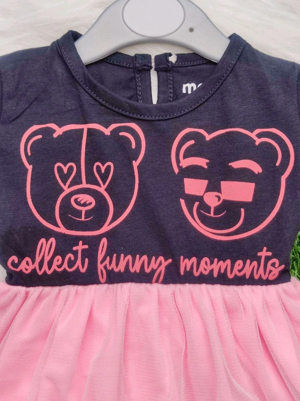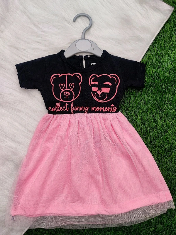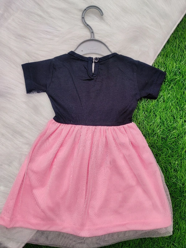 Girls Premium Satin Tulle Mesh Frocks - Pink Funny Moments