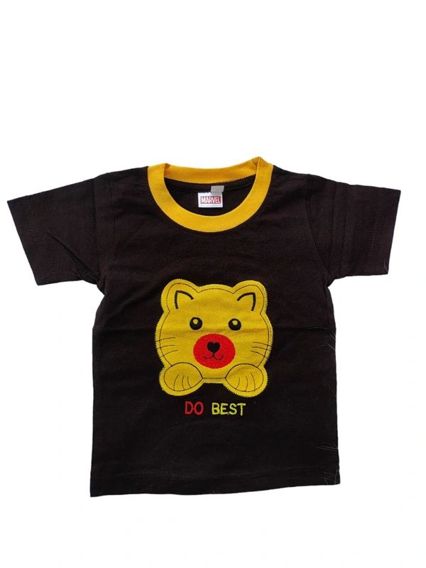 Hosiery Cotton Teddy Bear Design Tshirt for Boys & Girls - Coffee Brown